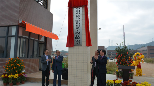 揭牌儀式簡(jiǎn)單而隆重,在醒獅歡騰的熱烈氣氛中,歐陽錦全書記、趙錫雄鎮(zhèn)長(zhǎng)、鄧志毅董事長(zhǎng)、劉喜旺總經(jīng)理共同為中山市金馬游樂設(shè)備工程有限公司揭牌。