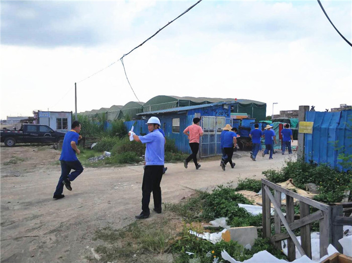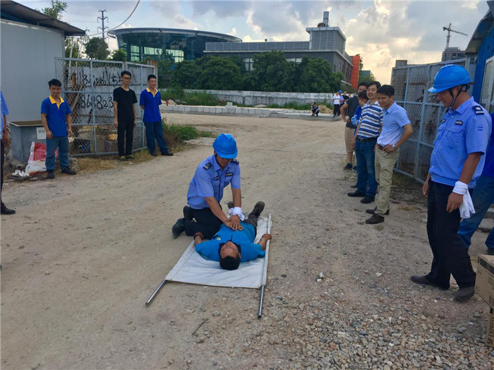 模擬火災現場消防演習設定30畝產品堆放區為著火點,分為四個組配合完成任務。第一組(滅火組)快速趕到事發地切斷電源,組員接好水帶水槍,用滅火器滅火;第二組(人員疏散組)組織疏散現場周圍人員,沿出口指示方向撤至一樓安全地方,保證樓道暢通,防止踩踏事故;第三組(人員物資搶救組)配合滅火組清理現場周圍物品,開辟防火隔離帶,救護傷員,用人工呼吸作簡單救治;第四組(照明、通訊組)配合其他三組負責場地照明、報警、模擬說明地址接警車、保證車道暢通到事發現場,滅火后留現場值班,防止二次火災發生。