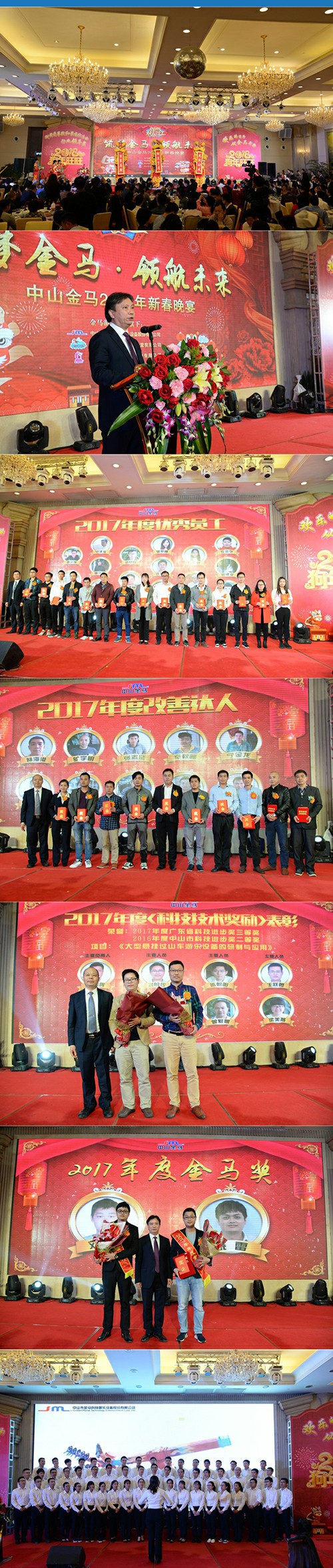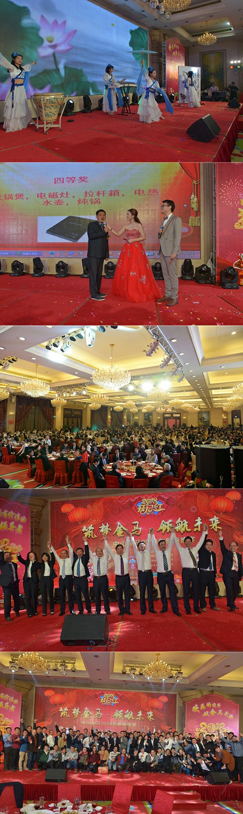 晚會現場,同行云集,燈光璀璨,激情四射的歌舞表演,催人奮進的年度表彰、扣人心弦的幸運抽獎、倍感溫暖的節日慰問。歡歌笑語中,團結、拼搏、創新的金馬人們展示了金馬團隊積極向上的精神風貌,增強了金馬人的凝聚力和歸屬感,弘揚了金馬企業精神。就公司在2017年所取得的成績,金馬公司鄧志毅董事長在晚會致辭中表示,“金馬的輝煌成績離不開今天金馬人的團結和努力,2017年是金馬公司保持良好發展勢頭的一年,是拓展業務、團隊建設、技術創新取得驕人成績的一年,是金馬全體員工迎接挑戰、經受考驗、克服困難、出色完成規劃的一年。在新的一年來臨之際,我們更應該卯足干勁、攜手同心、再創金馬輝煌”!