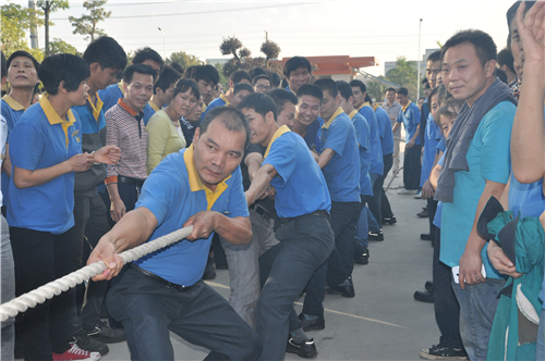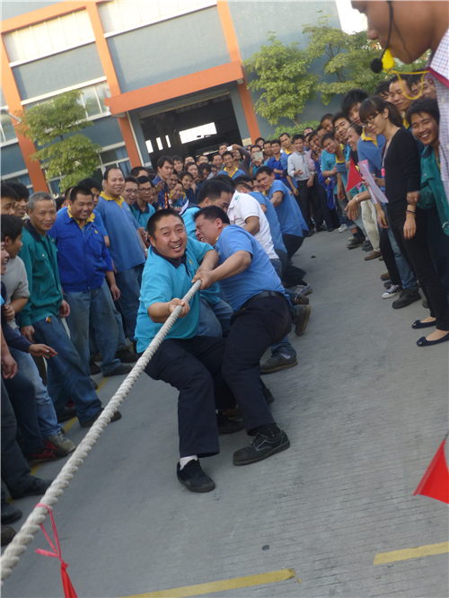 當日下午16:00,公司大門通道頓時沸騰起來,精益拔河比賽即將開始。在主持人進行簡單的規則說明后,參賽代表隊根據抽簽迅速就位,蓄勢待發。“嗶——”“加油!加油?。 彪S著一聲哨響,比賽開始,各隊卯足了勁,奮力拼搏:生產隊伍團結一致,擰成一股繩,合成一道力,其斗志及實力當仁不讓;辦公室隊伍不露怯色,他們用原理分析,受力解構,狹路相逢勇者爭鋒,書生意氣一路凱歌高奏。面對如此激烈的比賽,來自各個部門的啦啦隊也熱火朝天,忘我地為參賽健兒加油打氣,吶喊聲響徹了整個廠區。最后,機械A車間1隊榮獲摩天輪獎,物控部獲旋轉木馬獎,機械A車間2隊獲颶風飛椅獎,人力資源2隊、玻璃鋼車間同獲碰碰車獎。
