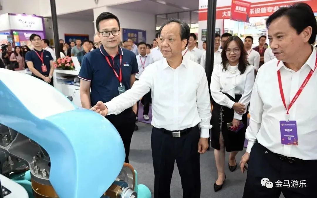 開幕式后,中山市委書記、市人大常委會主任郭文海一行領導蒞臨金馬游樂展位參觀指導。