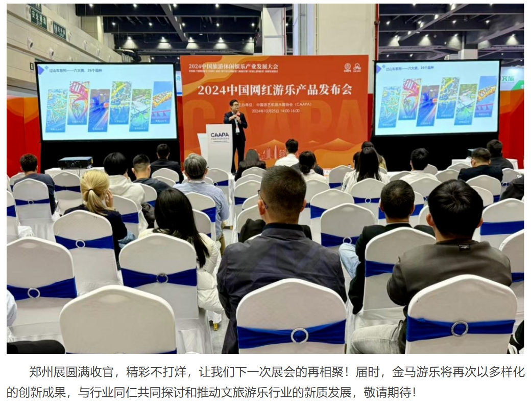 10月24-26日,由中國游藝機(jī)游樂園協(xié)會(huì)(CAAPA)主辦的2024中國(鄭州)旅游休閑娛樂產(chǎn)業(yè)博覽會(huì)在鄭州國際會(huì)展中心舉行,本次博覽會(huì)及相關(guān)活動(dòng),旨在進(jìn)一步推動(dòng)文旅休閑娛樂行業(yè)的發(fā)展與繁榮,促進(jìn)文化旅游與多業(yè)態(tài)深度融合,助力旅游業(yè)現(xiàn)代化建設(shè)和高質(zhì)量發(fā)展。公司董事長鄧志毅先生與眾多行業(yè)領(lǐng)導(dǎo)、嘉賓共同出席了開幕儀式。