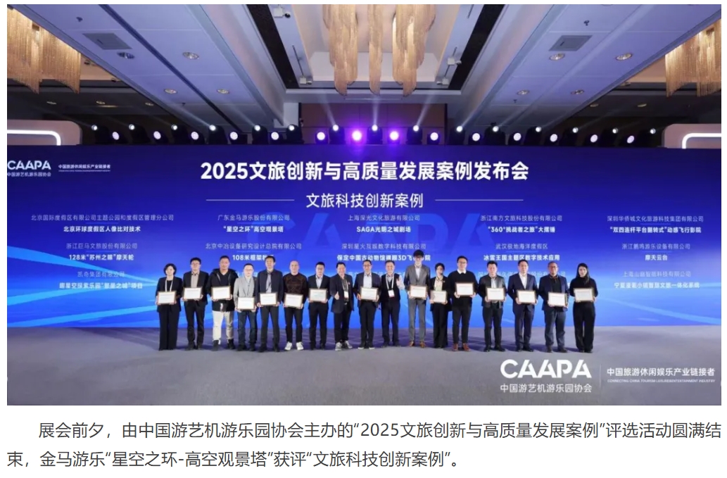 3月19日,2025 CAAPA北京展盛大開幕,展會首日,金馬游樂舉辦了主題為“革新體驗,領(lǐng)航未來”的新品揭幕活動,為全新懸掛過山車“掠空者”揭開神秘面紗。活動現(xiàn)場人頭攢動,氣氛熱烈,中國游藝機游樂園協(xié)會會長姚軍、副會長戎志剛、TEA(主題娛樂協(xié)會)董事會主席Matt Barton、印度游協(xié)會長VGP Ravidas等行業(yè)重要領(lǐng)導(dǎo)和嘉賓齊聚一堂,共同為這款過山車揭幕。他們的到來不僅為活動增添了光彩,也彰顯了金馬游樂在行業(yè)內(nèi)的強大影響力。