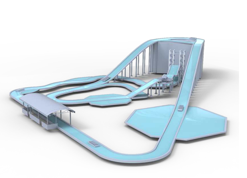 垂直提升激流勇進設(shè)備提升高度20米,具備垂直提升、跌落、背沖的特點。采用垂直傳動系統(tǒng)提升方式提升,減少設(shè)備占地面積。船體到達旋轉(zhuǎn)臺時進行方向調(diào)整,乘客可在游玩過程中分別體驗前向俯沖起伏、背向俯沖起伏兩種運動形式,同時可融入影視特效主題內(nèi)容,體驗元素多樣,驚險刺激。