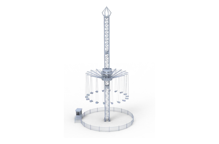 飛行塔設備由塔體、滑?架、吊椅三部分組成。獨有雙人座椅設計,隨著速率越來越快,座椅在半空中向外飄散,在整個游玩過程中乘客可充分享受高速飛行的暢快,刺激又浪漫。