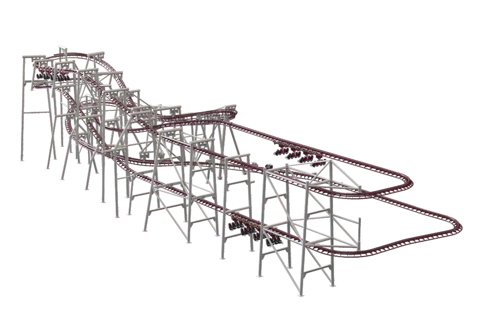 速降過(guò)山車由鏈條提升到軌道最高點(diǎn)后脫鏈,在經(jīng)歷自由滑行—速降—自由滑行—減速后,平穩(wěn)回到站臺(tái)。軌道設(shè)有俯沖、傾斜、速降等游玩元素,玩法經(jīng)典,能給游客帶來(lái)刺激愉悅的乘坐體驗(yàn)。
