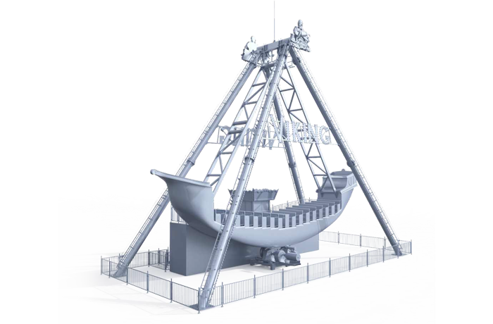 海盜船繞水平軸來回擺動,模擬海盜乘風出海的場景,交替而至的失重和超重感讓乘客盡情體驗搖擺的樂趣。16排座椅,承載96人。