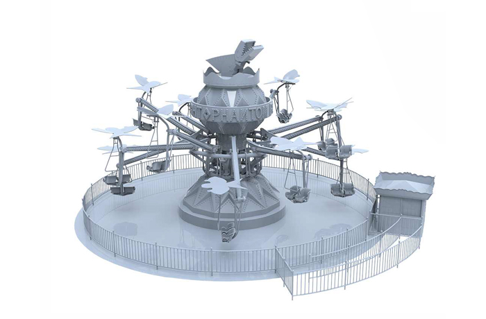 幻影飛行,以折紙風(fēng)車(chē)、千紙鶴和紙飛機(jī)系列為主題,讓人耳目一新的同時(shí)引起兒時(shí)回憶,引發(fā)共鳴。座艙能夠舒適的容納兒童和成人,擁有12個(gè)扶手,紙飛機(jī)底部擁有關(guān)于兒童主題涂鴉,乘客可以通過(guò)推拉他們面前的三?形控制桿控制紙飛機(jī),此外中央液壓系統(tǒng)擁有保持平衡的功能,無(wú)論乘客如何控制紙飛機(jī)的運(yùn)動(dòng),都能使其保持平衡飛行。