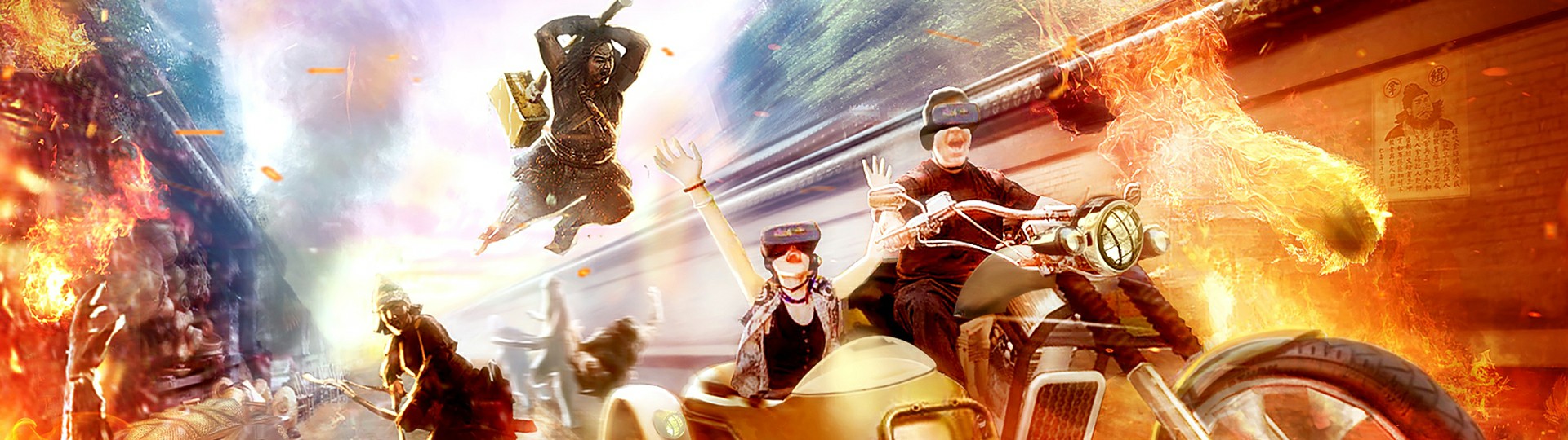 國內首創的乘騎式VR動感影院,乘客佩戴VR頭盔坐在三自由度動感摩托車上,車體將根據故事情節的發展作出相應的升降、仰俯、擺動等動作,配合逼真的環境特效,讓乘客在虛擬的世界中無限探索,刺激感大大提升