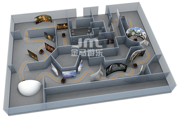 動感黑暗乘騎采用創(chuàng)新型六自由度動感騎乘設備,游客乘坐動感座艙穿梭由主題景觀、高清影片、機模、特效、音效等組成的不同故事場景,是擁有高沉浸感的體驗游樂項目。