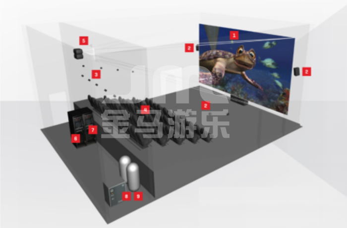 項目結合4D影音技術,利用環境模擬與特效、專業動感座椅,把傳統的3D立體影院完美升級,帶領游客進入跌宕起伏、扣人心弦的故事情節當中。